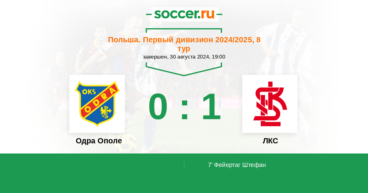 Протокол матча Одра Ополе против ЛКС