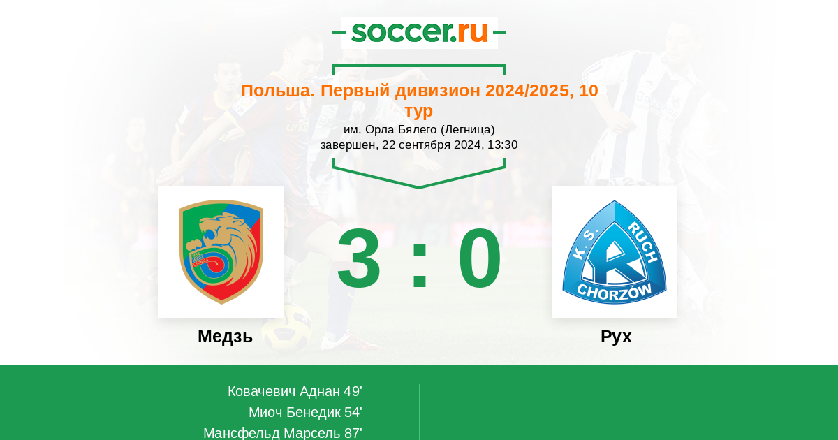 Протокол матча Медзь против Рух