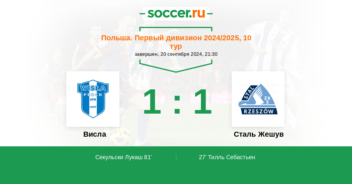 Протокол матча Висла против Сталь Жешув