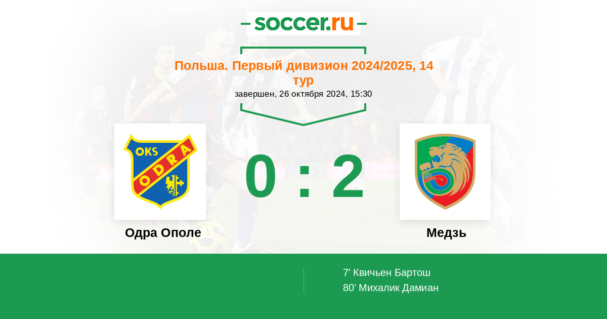 Протокол матча Одра Ополе против Медзь