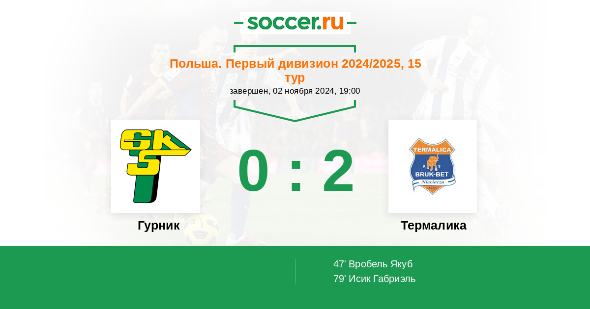 Протокол матча Гурник против Термалика
