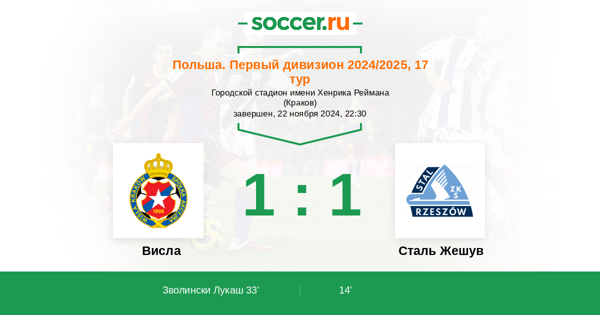 Протокол матча Висла против Сталь Жешув
