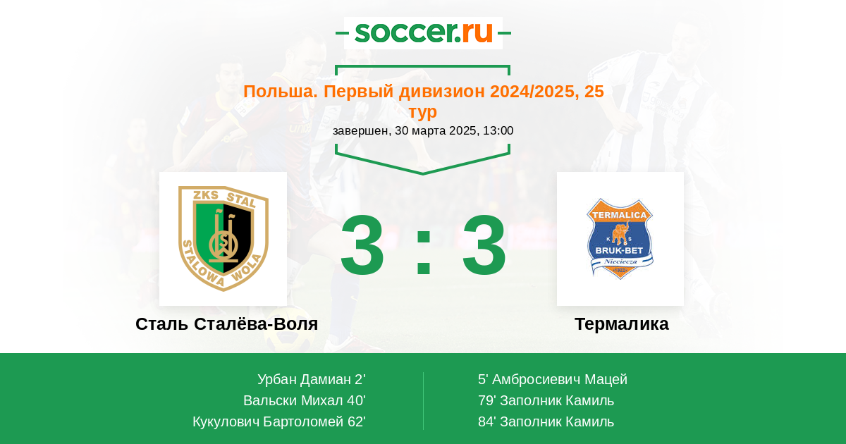 Протокол матча Сталь Сталёва-Воля против Термалика