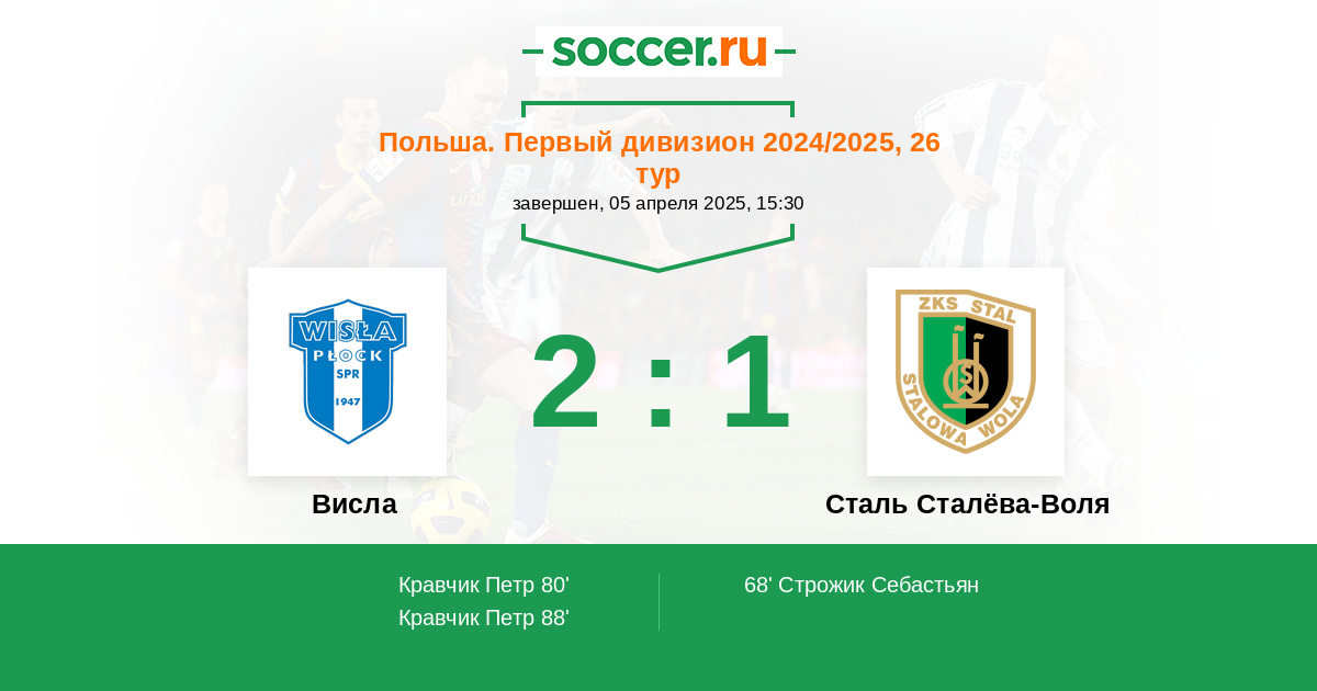 Протокол матча Висла против Сталь Сталёва-Воля