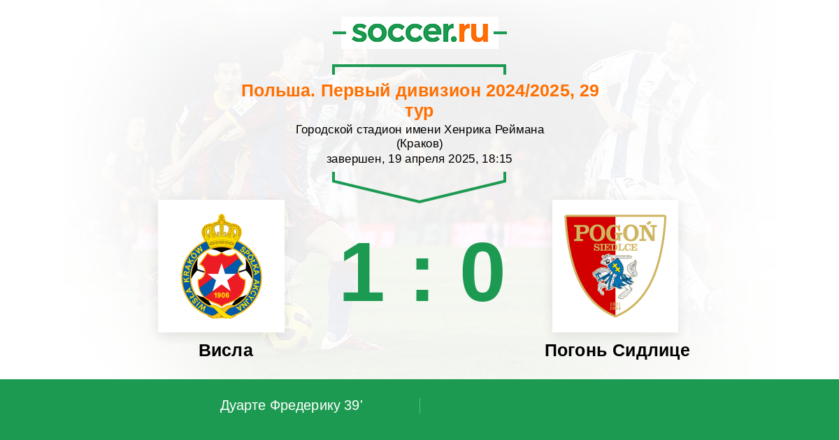 Протокол матча Висла против Погонь Сидлице