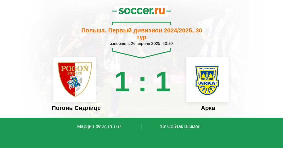 Протокол матча Погонь Сидлице против Арка