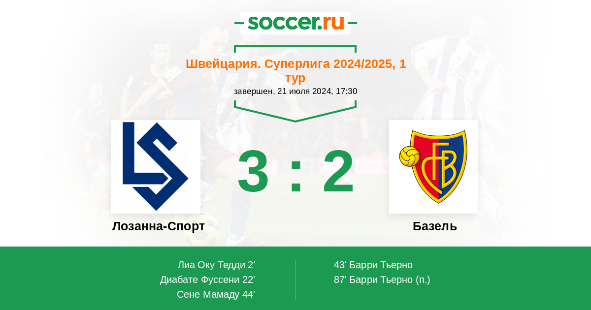 Протокол матча Лозанна-Спорт против Базель