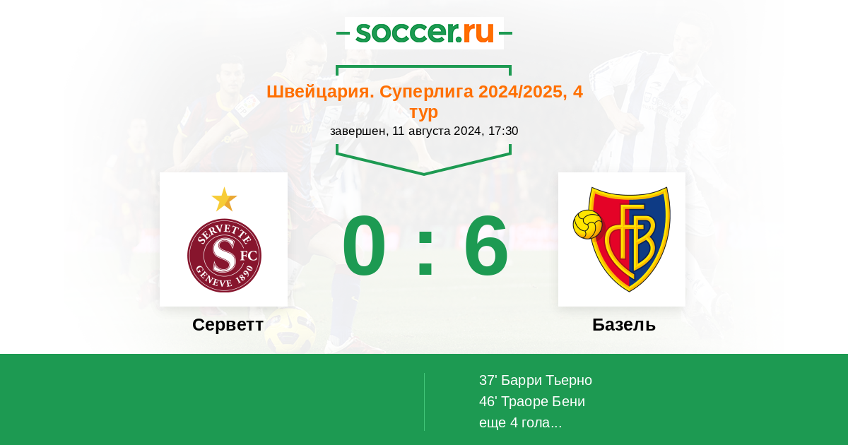 Протокол матча Серветт против Базель