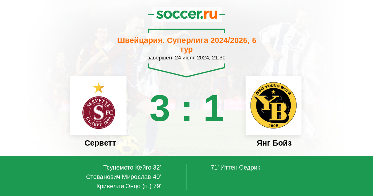 Протокол матча Серветт против Янг Бойз