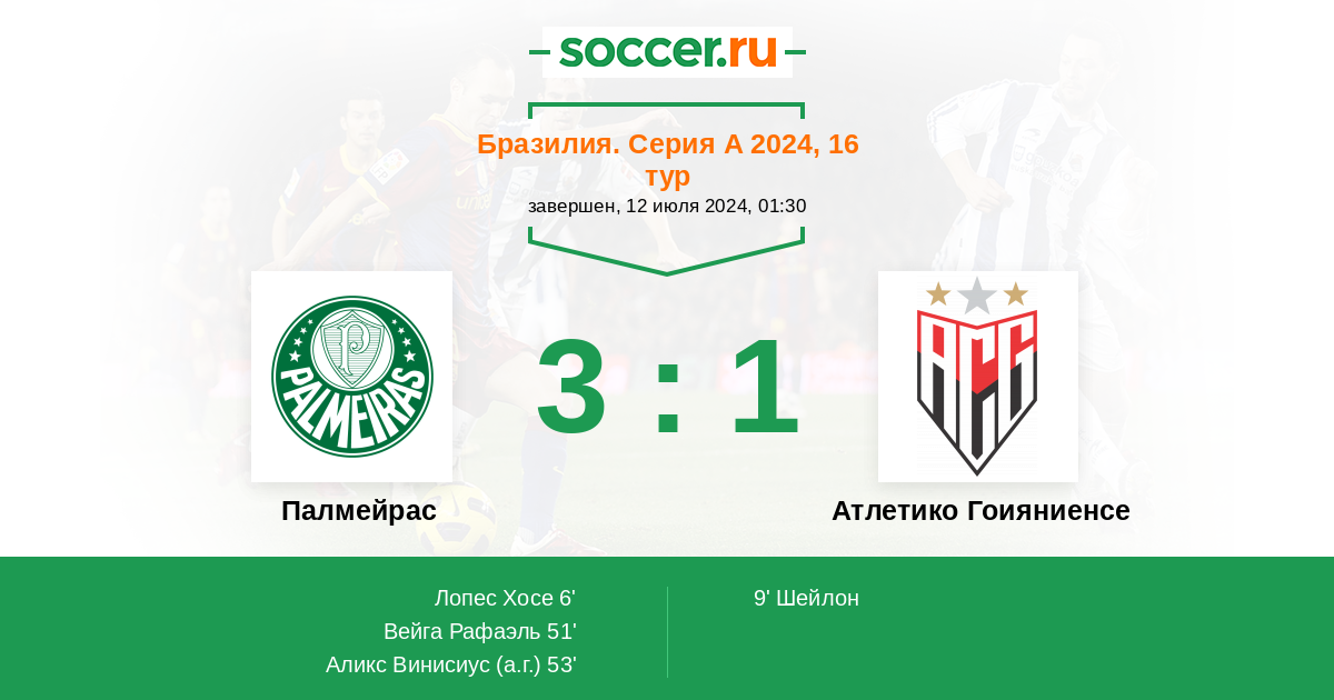 Протокол матча Палмейрас против Атлетико Гоияниенсе