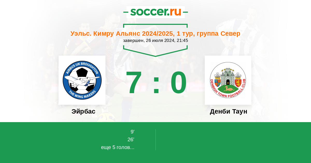К очному матчу обе команды подошли в отличной форме. Эрбас давно не проигрывает.... последний раз в ноябре 2023....Денбиг хорошо усилился и готов как всегда, к матчу Эрбас...В очном споре каждая из сторон будет стремиться играть на равных....матч имеет все шансы завершиться с многими голами