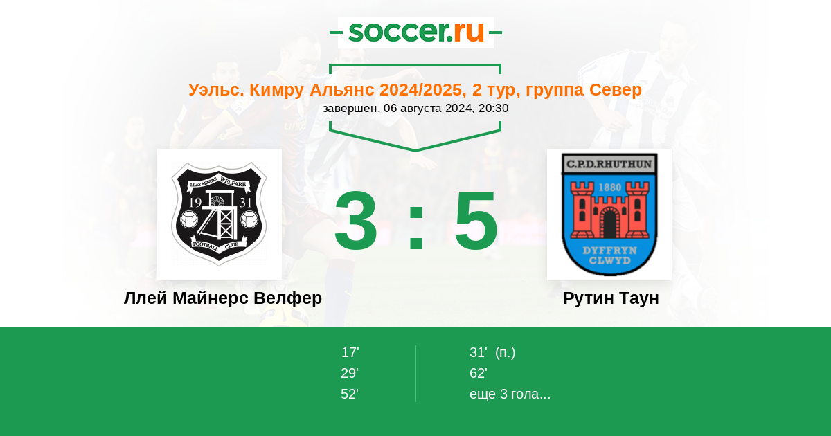Протокол матча Ллей Майнерс Велфер против Рутин Таун