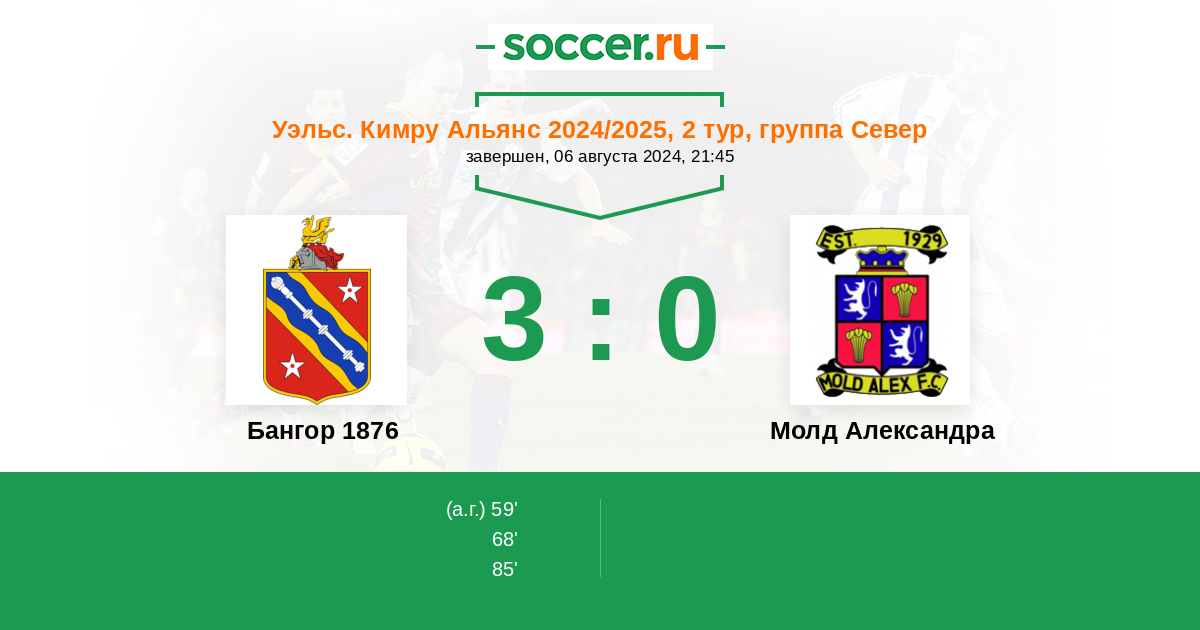 Протокол матча Бангор 1876 против Молд Александра