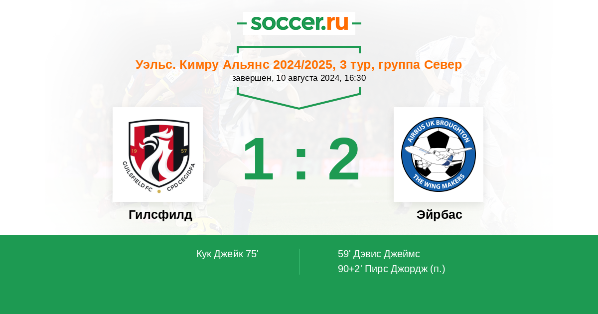 Протокол матча Гилсфилд против Эйрбас