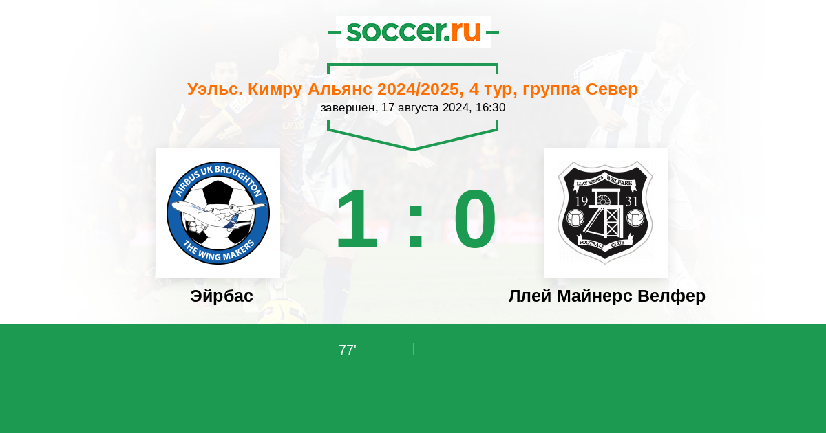 Протокол матча Эйрбас против Ллей Майнерс Велфер