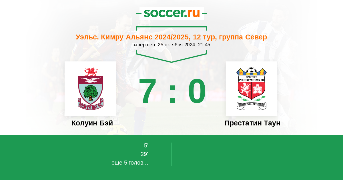 Протокол матча Колуин Бэй против Престатин Таун
