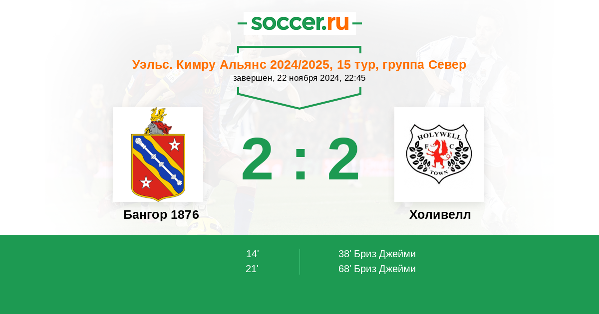 68’ 2:2 Бриз Джейми