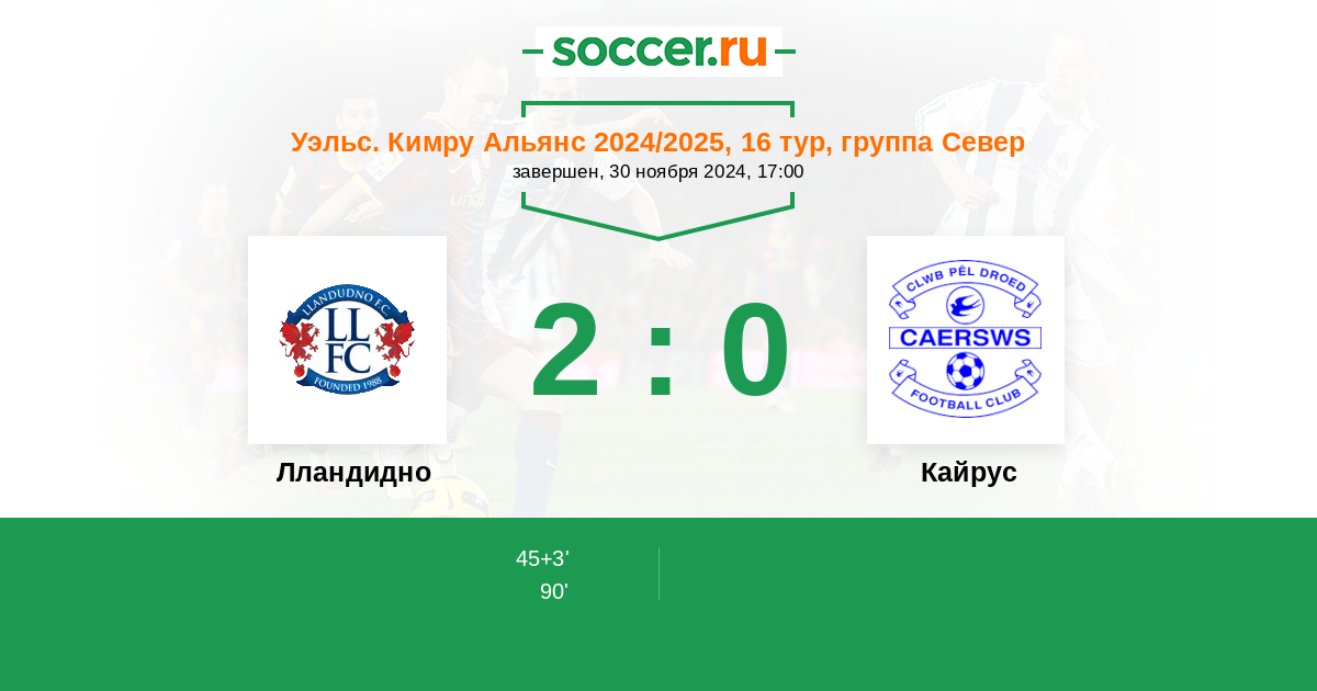 Протокол матча Лландудно против Кайрус