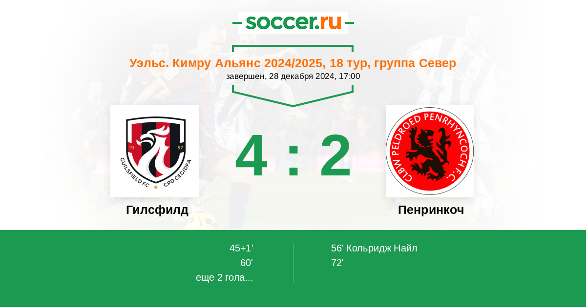 Протокол матча Гилсфилд против Пенринкоч