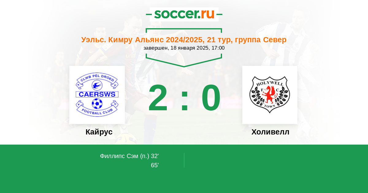 Протокол матча Кайрус против Холивелл