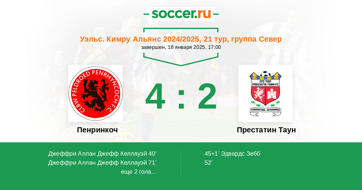 Протокол матча Пенринкоч против Престатин Таун