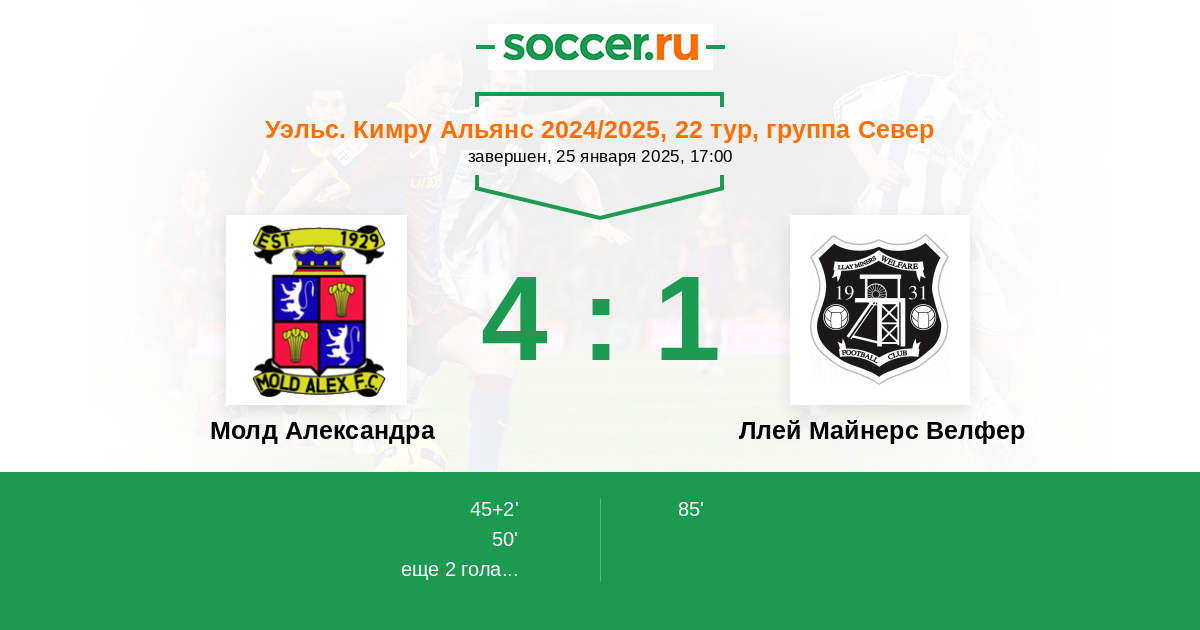 Протокол матча Молд Александра против Ллей Майнерс Велфер