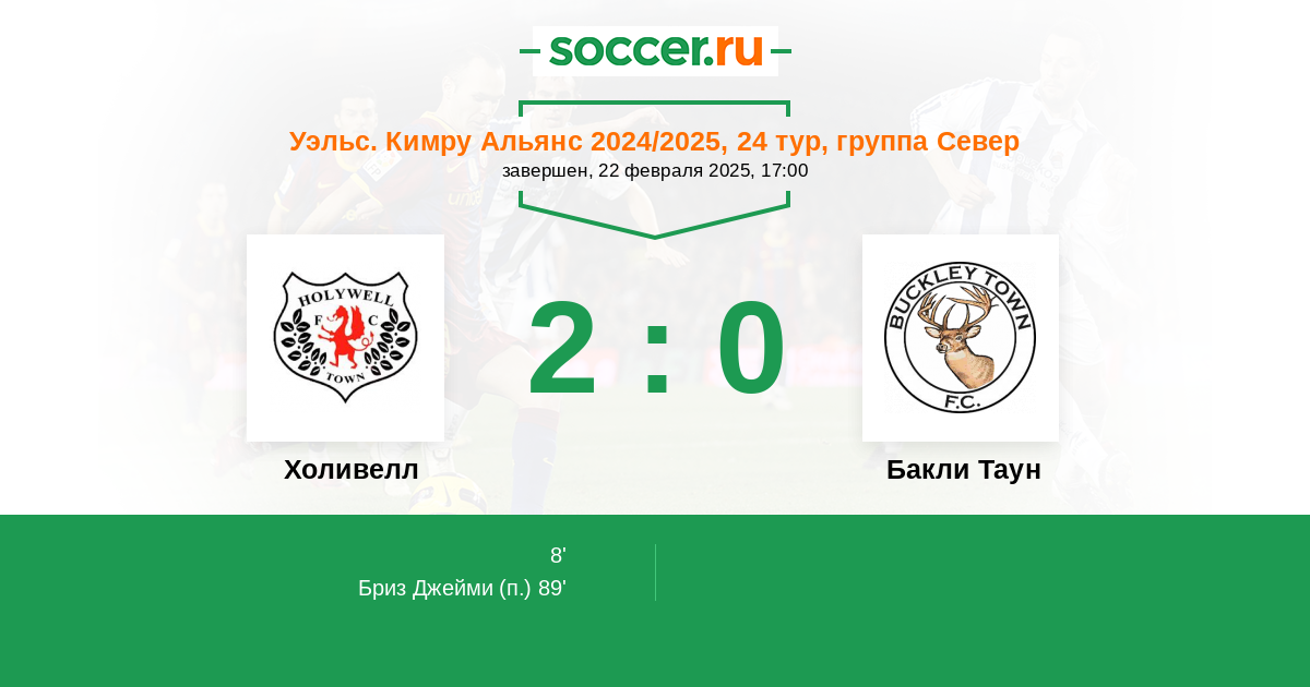 Протокол матча Холивелл против Бакли Таун