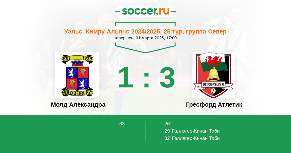 Протокол матча Молд Александра против Гресфорд Атлетик