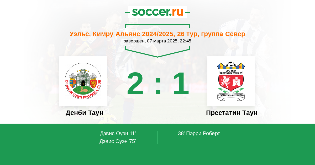 Точный счет 1-го тайма - 2:0