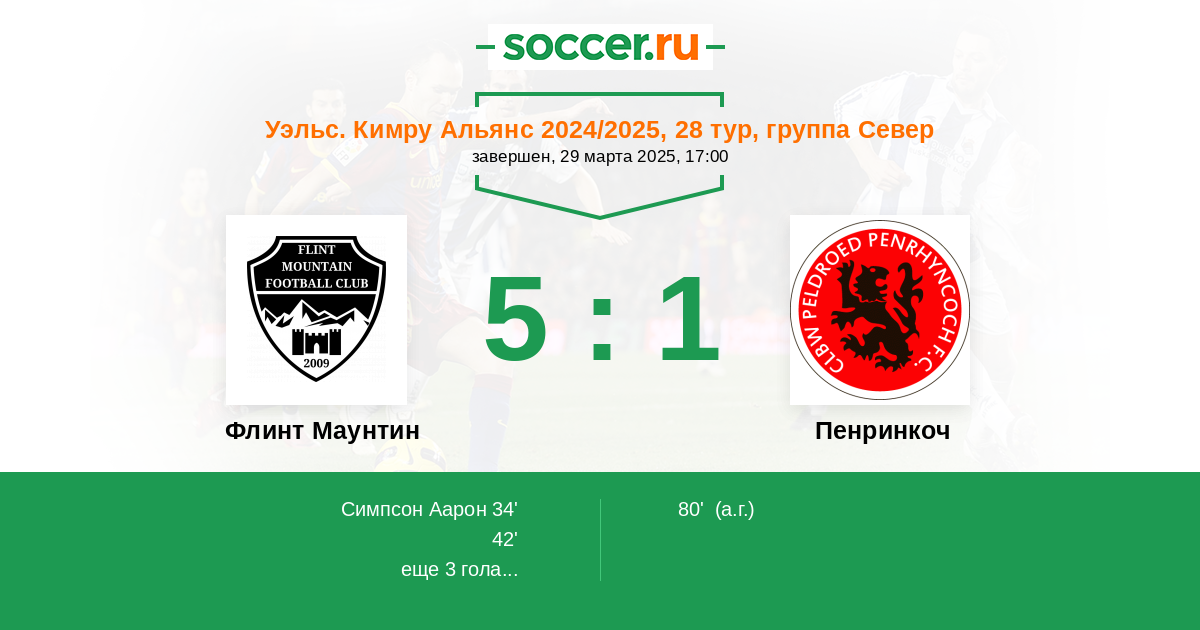 Флинт Маунтин - Пенринкоч ! Вроде всё в этом матче говорит о победе хозяев , в первую очередь - своё поле , но не всё так однозначно - гости находятся в лучшей форме - попробую аккуратно на них .
