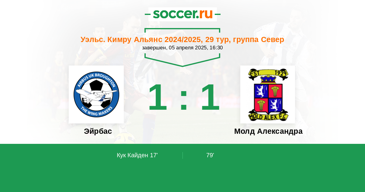 Протокол матча Эйрбас против Молд Александра