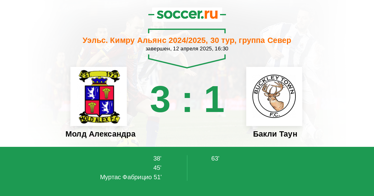 Протокол матча Молд Александра против Бакли Таун