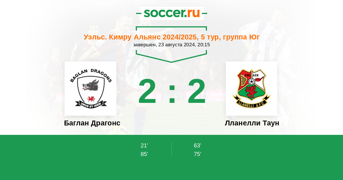 Протокол матча Баглан Драгонс против Лланелли Таун