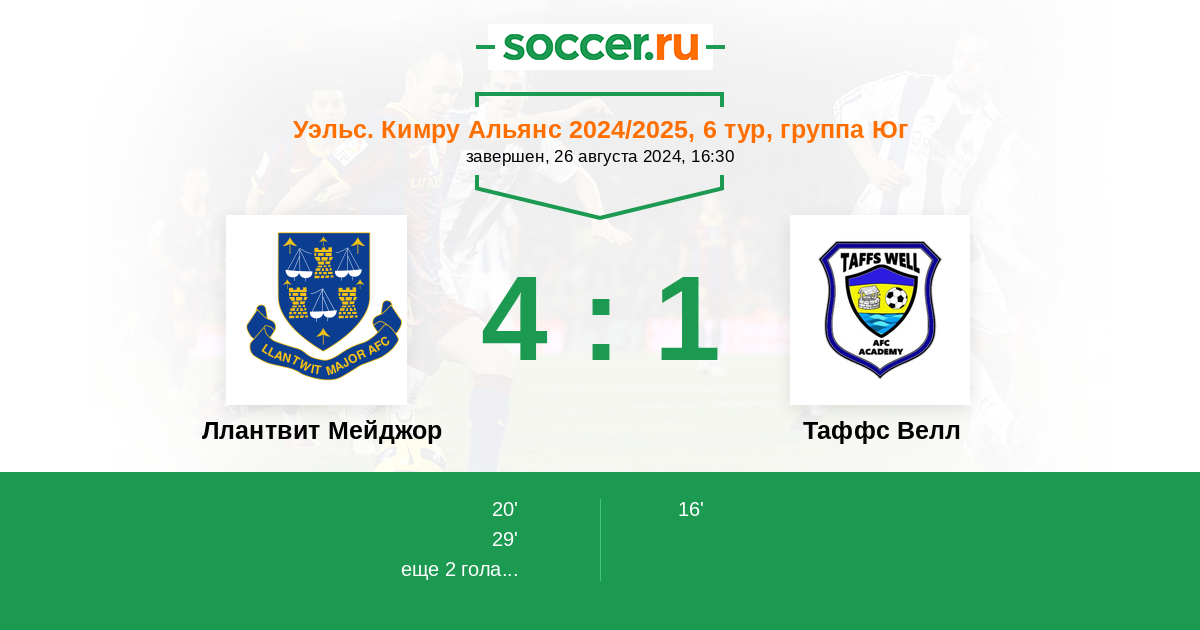 Протокол матча Ллантвит Мейджор против Таффс Велл