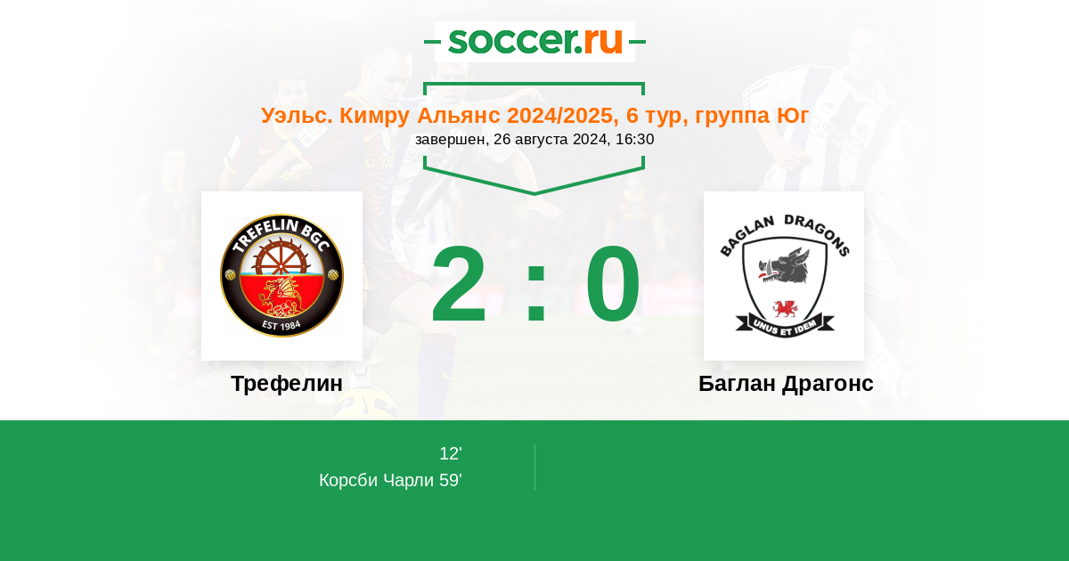 Протокол матча Трефелин против Баглан Драгонс