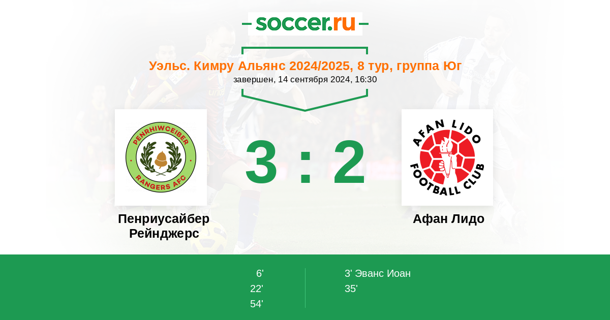 Протокол матча Пенриусайбер Рейнджерс против Афан Лидо