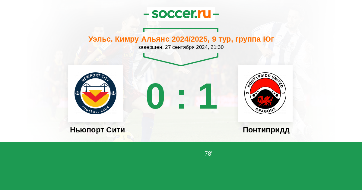 Протокол матча Ньюпорт Сити против Понтипридд