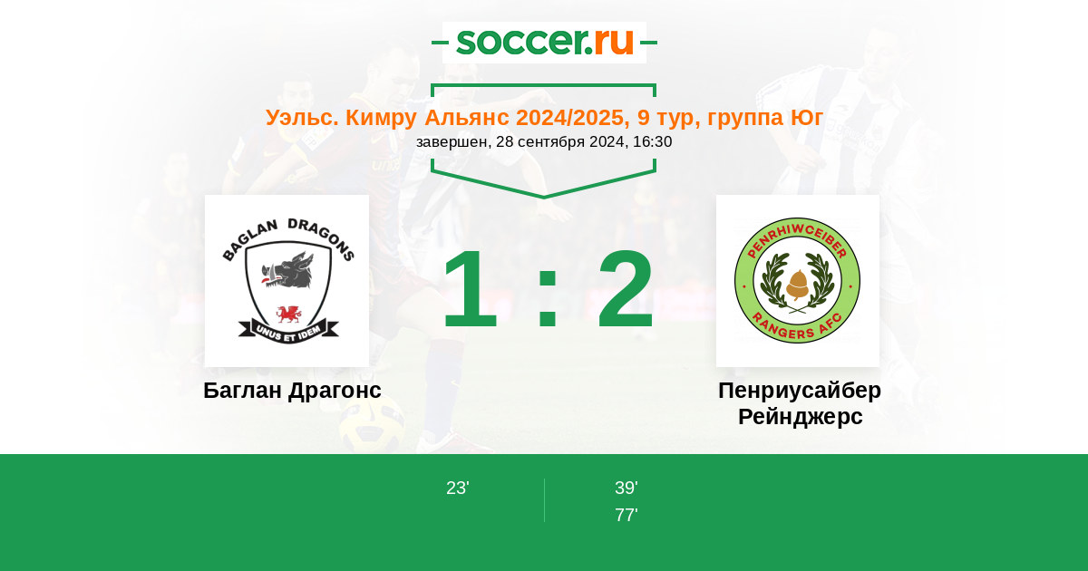 Протокол матча Баглан Драгонс против Пенриусайбер Рейнджерс