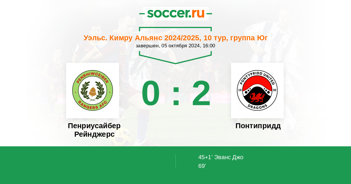 Протокол матча Пенриусайбер Рейнджерс против Понтипридд