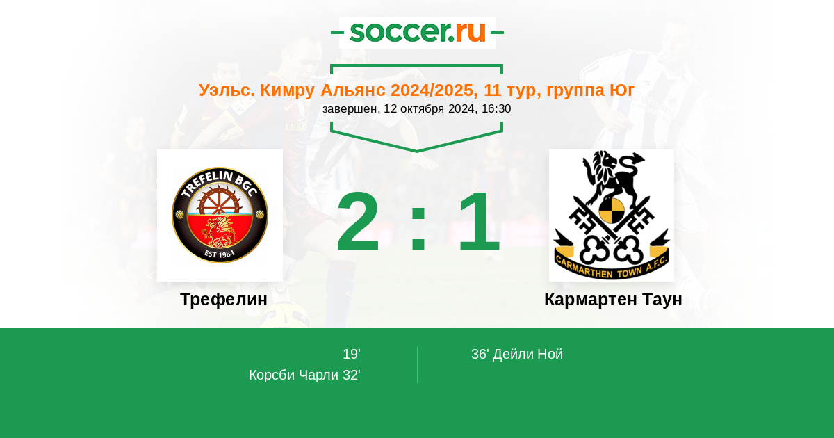 Протокол матча Трефелин против Кармартен Таун