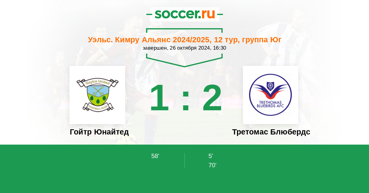 Протокол матча Гойтр Юнайтед против Третомас Блюбердс