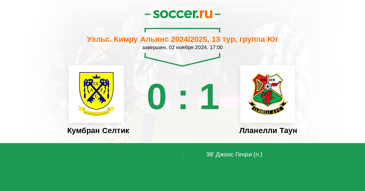 Протокол матча Кумбран Селтик против Лланелли Таун