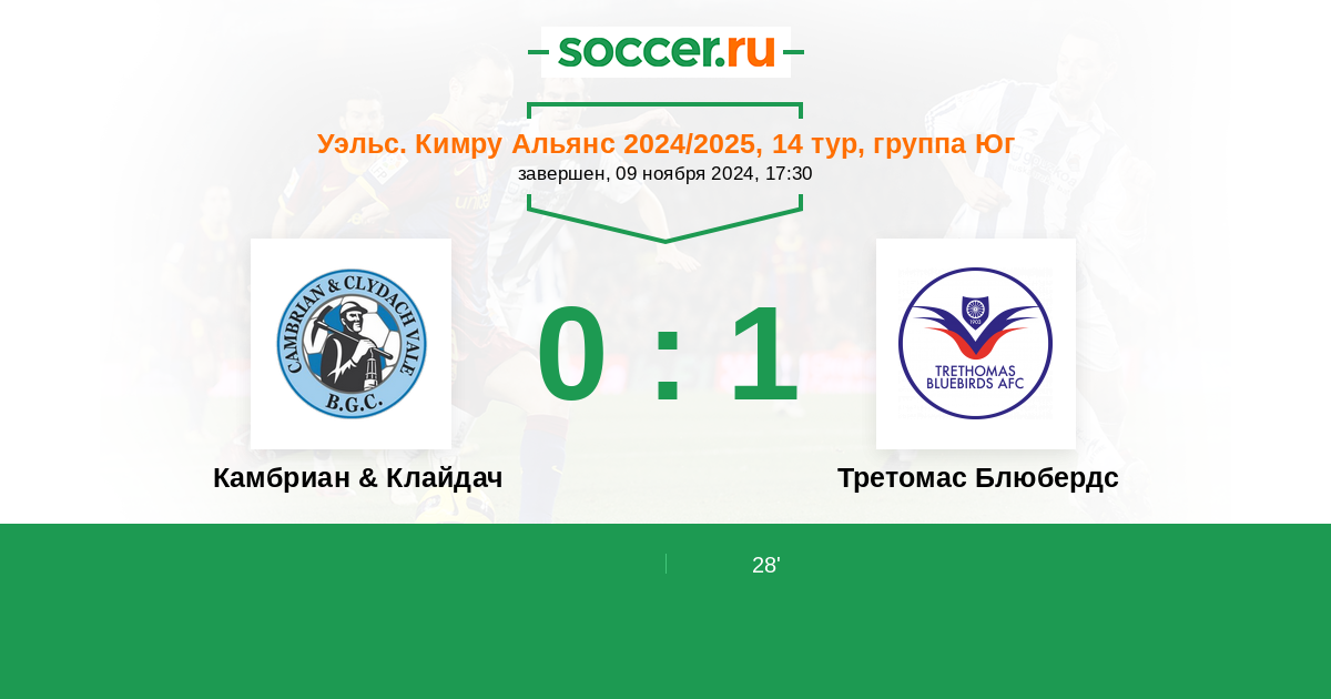 Протокол матча Камбриан & Клайдач против Третомас Блюбердс