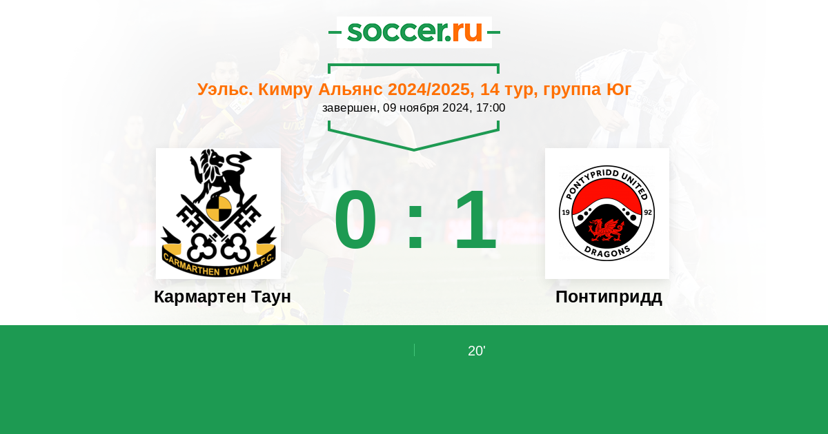 Протокол матча Кармартен Таун против Понтипридд