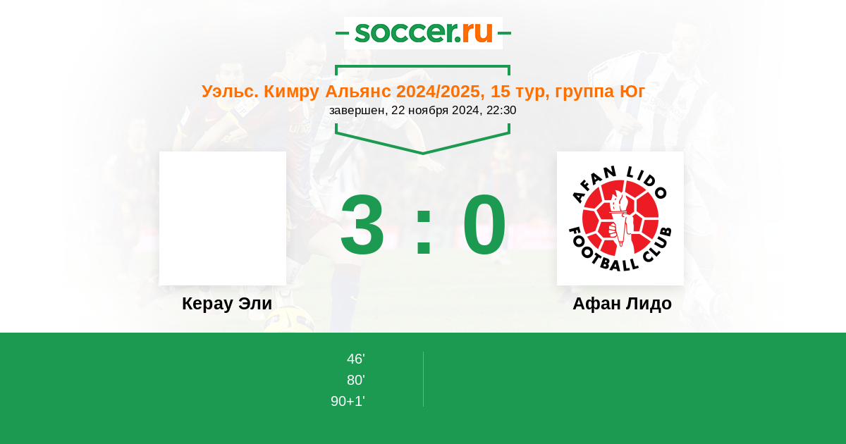 Протокол матча Керау Эли против Афан Лидо