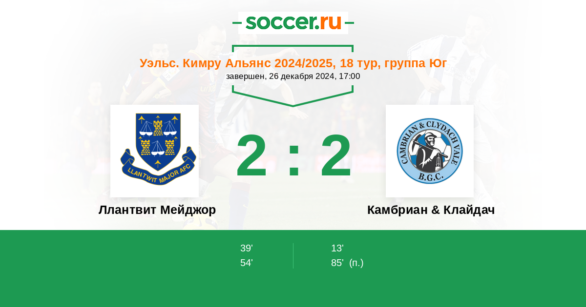 Протокол матча Ллантвит Мейджор против Камбриан & Клайдач