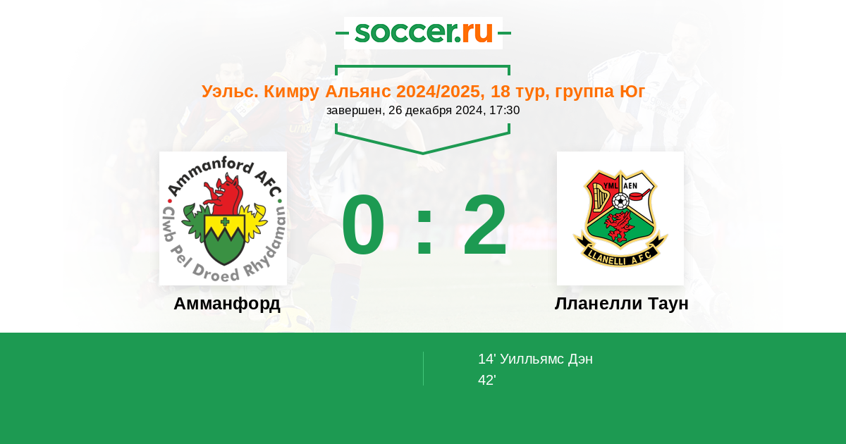 Протокол матча Амманфорд против Лланелли Таун