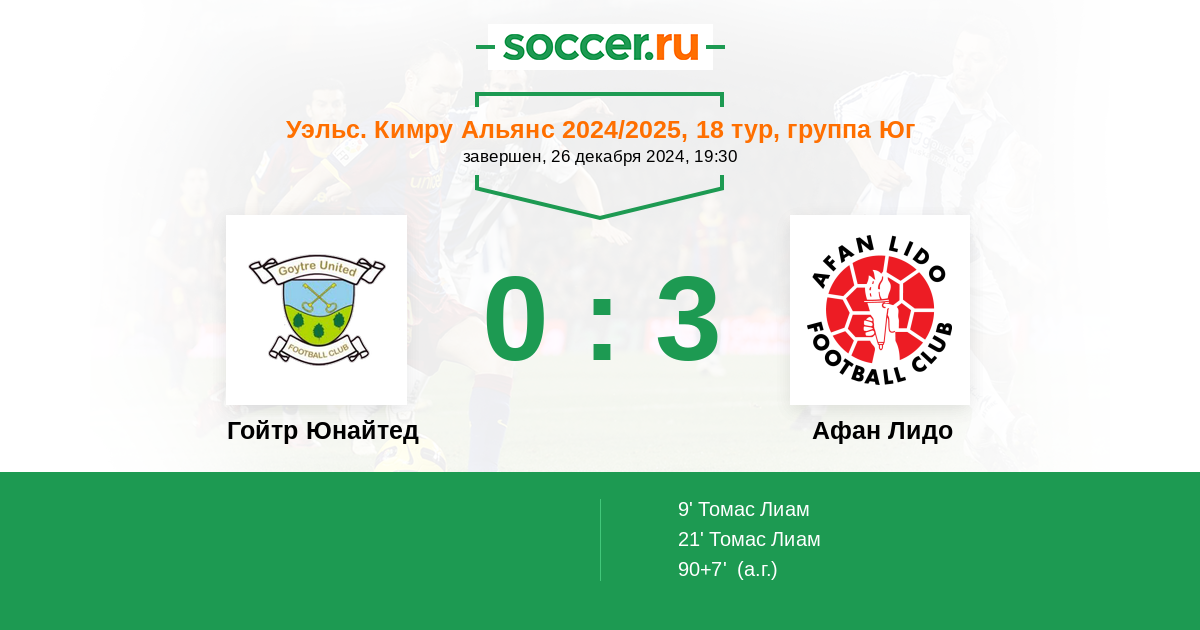 Протокол матча Гойтр Юнайтед против Афан Лидо
