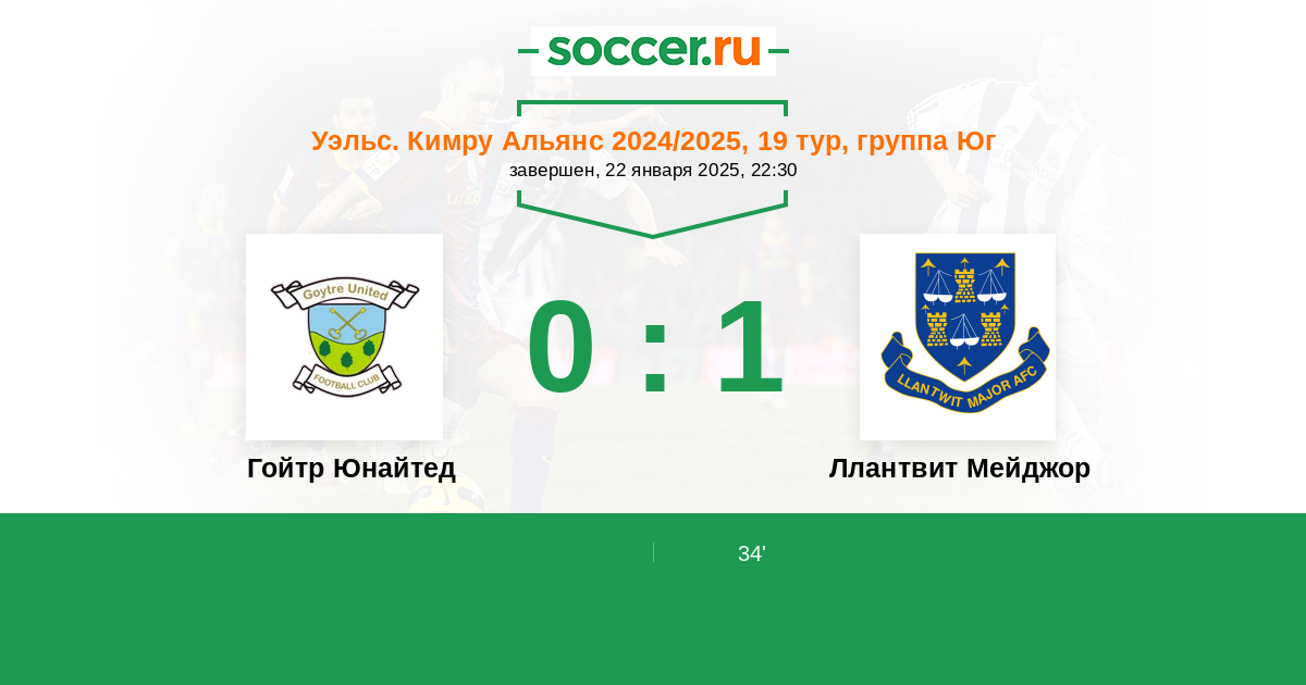 Протокол матча Гойтр Юнайтед против Ллантвит Мейджор
