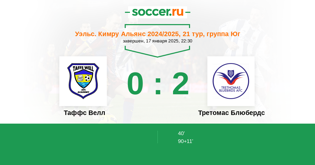Протокол матча Таффс Велл против Третомас Блюбердс